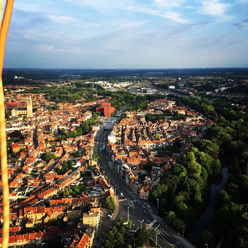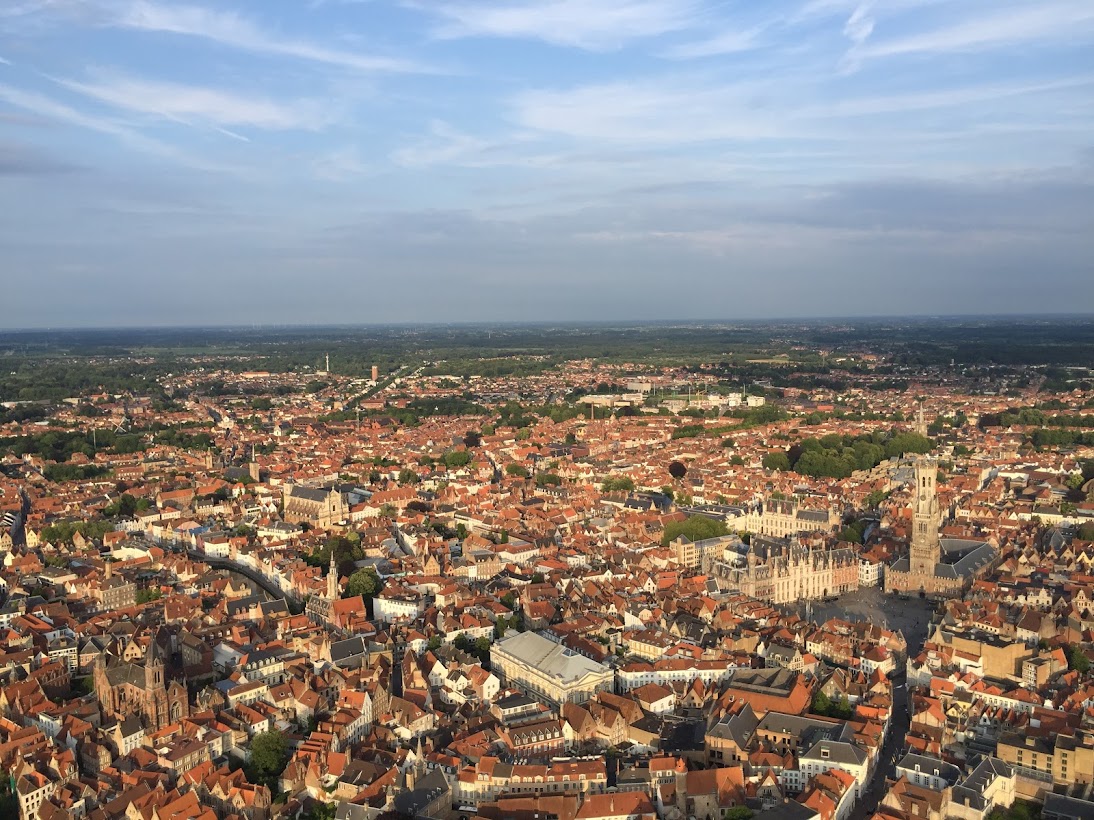Brugge is één van de mooiste steden van Europa. Maak een ballonvaart over deze romantische stad met zijn kronkelende steegjes en romantische reien. Waan je bijna in de middeleeuwen. Brugge bezit ook moderne architectuur zoals het Concertgebouw, dat tot de belangrijkste in Vlaanderen behoort. Al van vrij ver te herkennen. Het Belfort op de Grote markt in Brugge is één van de pronkstukken van de stad.
